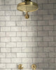 Featuring charming details, this handcrafted rainfall shower in unlacquered brass and arcuate arm is perfect for a classic-inspired space.