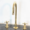 1x The Bell Widespread Unlacquered Brass Kitchen Faucet 15" spout height with sprayer/simple handles in Brushed Brass $546.03