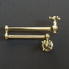 Give your kitchen a modern edge with the pot filler Kitchen Faucet. Featuring cross handles, this piece's elegant shape extends over your counter for a streamlined look and feel. Made of brass, it boasts a durable finish that is available in a variety of colors to complement your decor. it includes a water-efficient and eco-friendly aerator.
